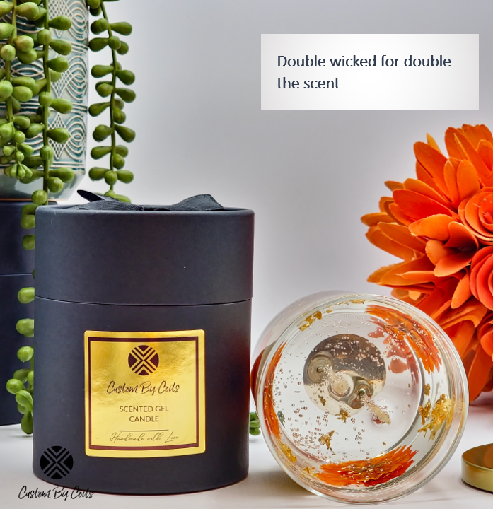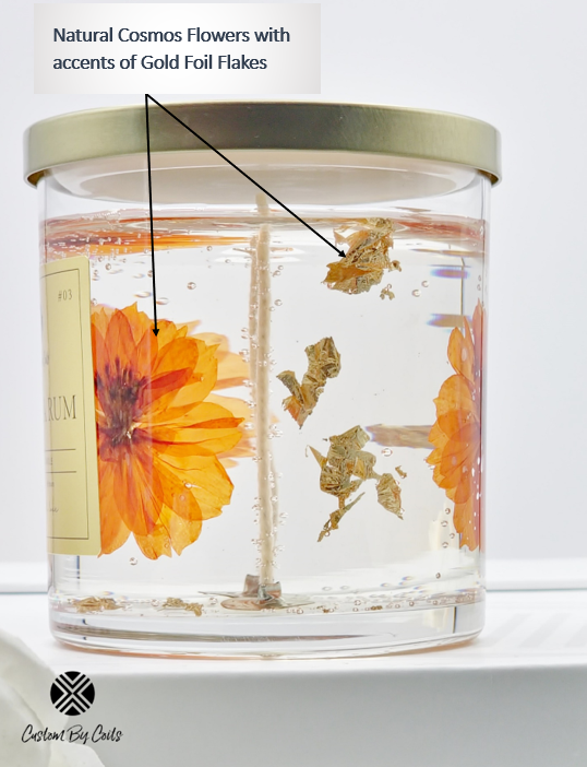 Transform your space with the rich, fall-inspired scent of Vanilla Rum in this 2-wick, 8 oz Cosmos Gel Candle. Hand-poured with premium gel wax, it features live orange cosmos flowers and offers up to 60 hours of ambiance and fragrance.