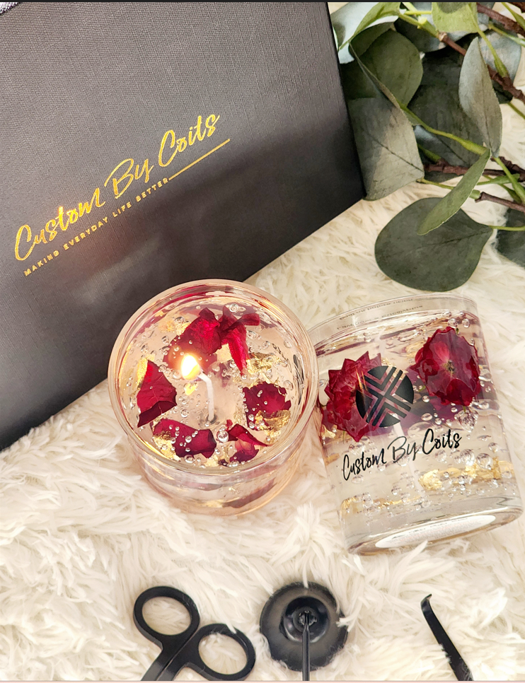 Roses & Petals Gel Candle Gift Set with Candle Accessories | Real Flowers & Gold Foil Accents | Custom By Coits